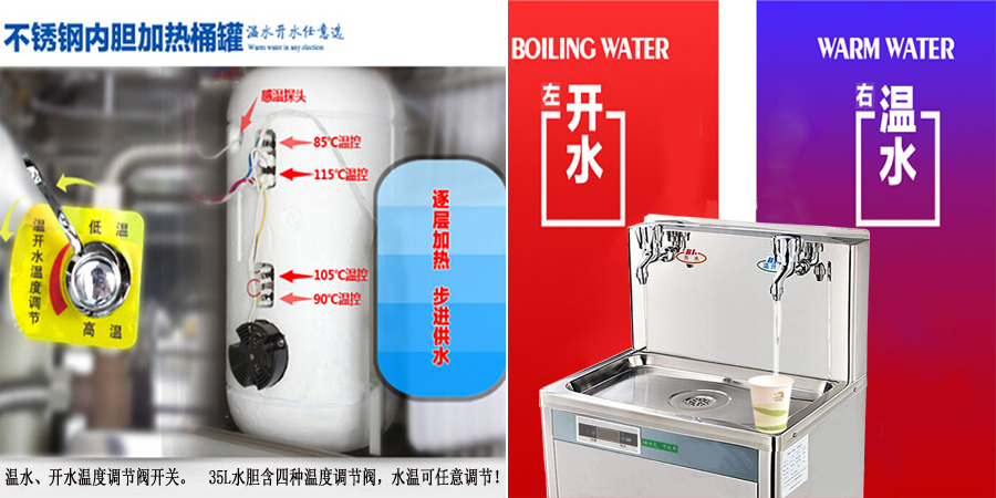 无需专人去搬运、管理桶装水 减少行政成本;不锈钢直饮机水龙头较多、出水更快可减少等待时间; 温开水(水烧开后降温)可直接饮用,比喝开水省时间